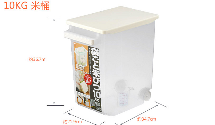 特點(diǎn):設(shè)計(jì)獨(dú)到,外觀大方;底部滑輪設(shè)計(jì),推拉方便;表面標(biāo)有刻度,清楚地表示出用米量的多少;另附一個(gè)刻度量杯,計(jì)量更加省心。